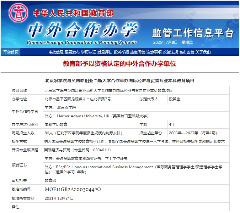 悟空体育与英国哈珀亚当斯大学合作举办国际经济与贸易专业本科教育项目