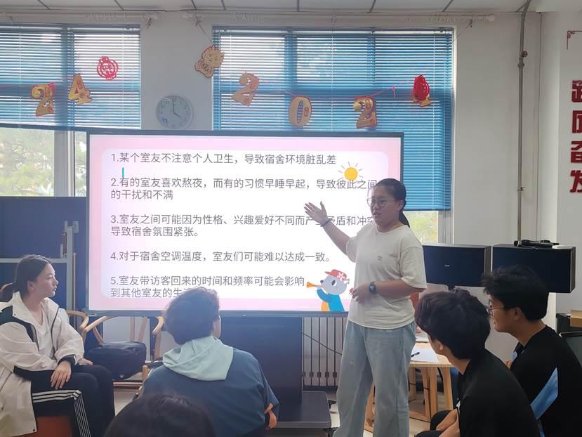 接下来的“宿舍问题解决之道”环节,各组围绕宿舍中常见的实际问题展开了热烈讨论。针对作息时间不一致、卫生问题及人际关系矛盾等案例,提出了相应的解决方案,并进行了分享交流。通过对实际案例的分析与讨论,宿舍长们不仅增强了对宿舍氛围营造的认识,更提升了解决宿舍问题的能力。