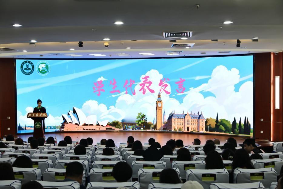 外籍教师代表William表达了对同学们的祝福。他分享了自己跨文化学习的经验,鼓励同学们以开放的心态拥抱多元文化,积极融入当地社会,在交流互鉴中不断成长。