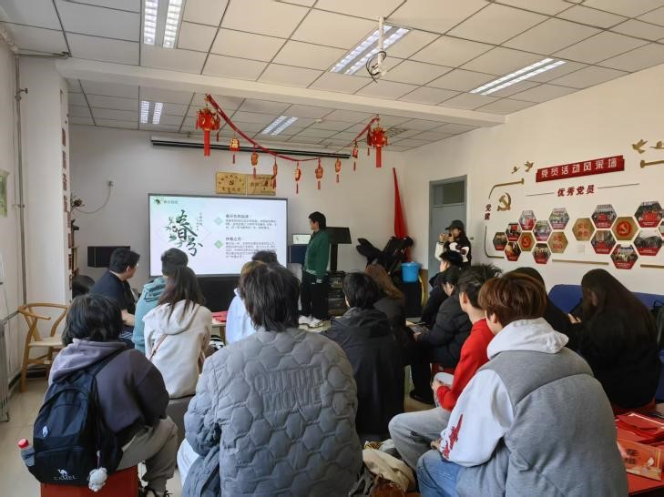 2024级农业资源与环境班团支部书记陈学圣作为主持人,通过多媒体课件与实物展示相结合的方式,生动阐释了春分“阴阳相半”的天文内涵与剪纸艺术“以象寓意”的美学密码。