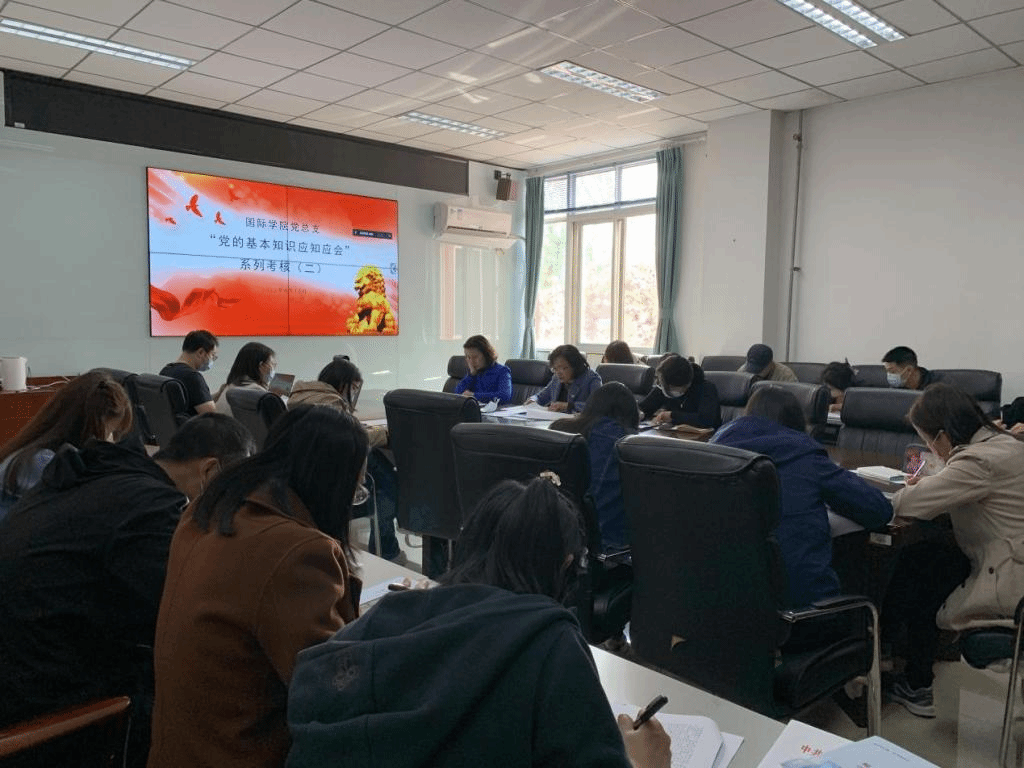 2022年4月13日,悟空体育党总支在悟空体育会议室组织“党的基本知识应知应会”第二期考核。悟空体育全体教职工参加考核,悟空体育专职组织员高原同志进行考核现场监督。