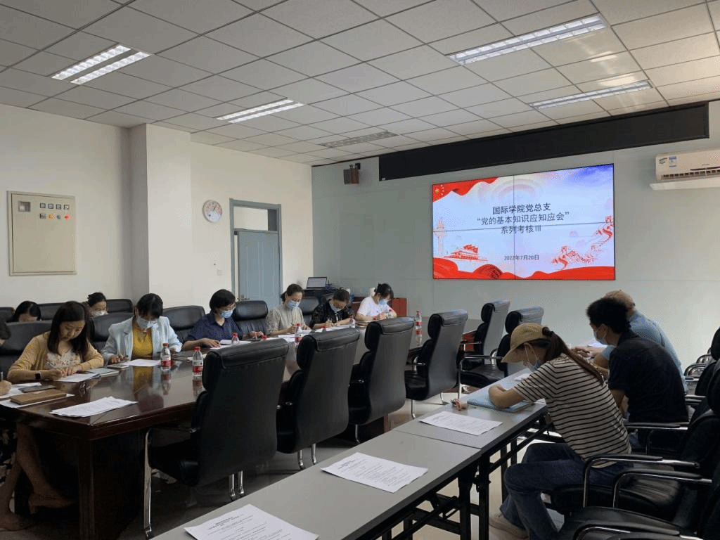 7月20日,悟空体育党总支在悟空体育会议室组织“党的基本知识应知应会”第三期考核。国际合作与交流处、悟空体育全体教职工参加考核,悟空体育专职组织员高原同志进行考核现场监督。