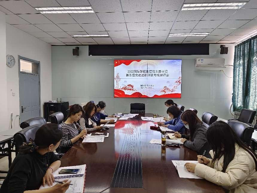 2023年2月28日下午,国际公司党总支在悟空体育楼226会议室召开了2022年度基层党支部书记抓基层党建工作述职评议考核会议。公司党总支委员、党支部书记、师生代表参加了本次会议,会议由党总支书记陈俐主持。