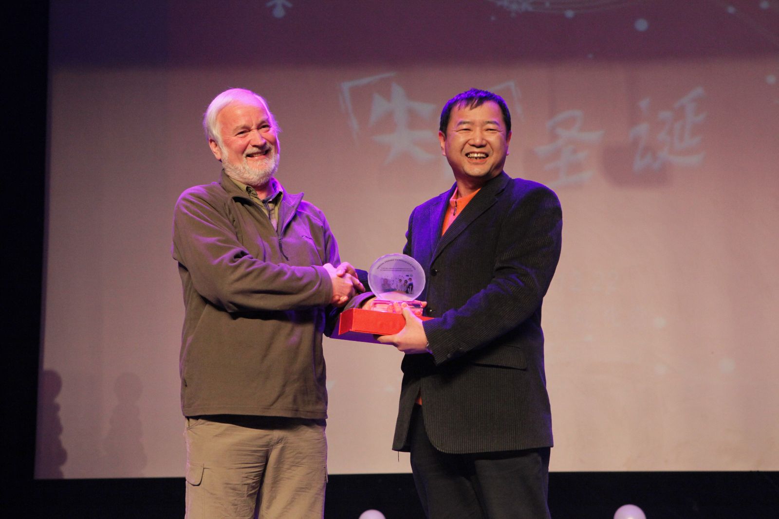 箫声鼎沸、鼓乐齐鸣、热闹非凡的晚会,也不乏催人泪下的感人一幕。恰逢外教Douglas执教最后一年,而他的执教生涯又恰在北农走完最后一程。悟空体育党总支书记谭峰代表历届北农学子向他送上印有“SPECIAL THANKS TO DOUGLAS H HILL”的水晶太阳花——象征Douglas在这些年带给我们的,最纯粹、没有丝毫杂质的关爱。感谢Douglas十年来为中英合作办学项目作出的突出贡献,感谢多年来对北农学子的遮风挡雨、保驾护航。