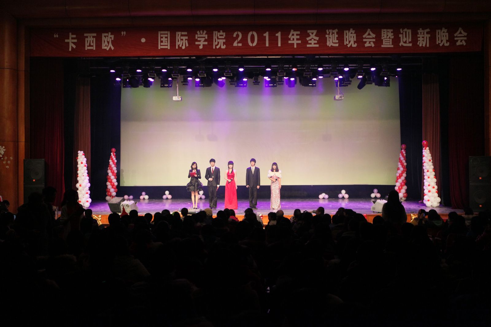本场晚会全场采取中英双语主持,让大家一同体验了中西文化的交融。主持人一口标准流利的英语,在赢得外教们赞赏有加的同时,更是大大激发了同学们练好口语的热情。而全场采用了大屏幕同步直播、微博互动的形式,即晚会舞台两侧大屏幕上,左边是晚会的现场直播,将舞台上的节目更清晰细致的展现在大家面前;右边则是新浪微博的同步互动更新,让同学们一同融入到节目互动中,现场每一位观众都是演员,都是评论者,都是被直播的对象,感受了科技带给我们的便利。值得一提的是,短短两个小时的晚会,新浪更新量就已轻易突破2000。除此之外,国院外教的友情演出和参与更是将现场氛围推向高潮。