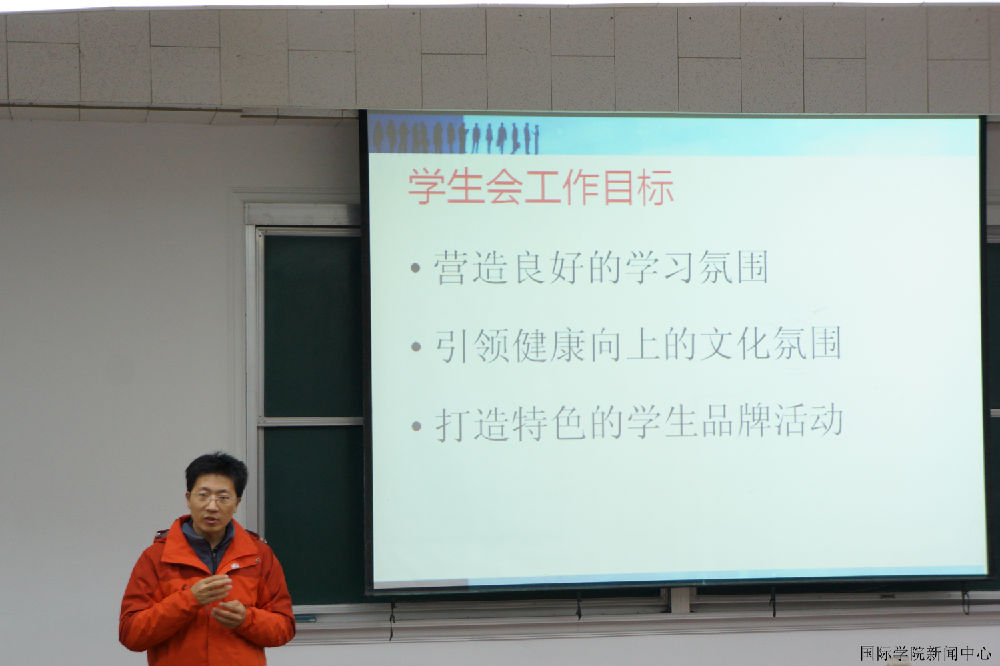 On October 29th, 2:10 pm.vice-president Liu trained the students in student union and he made a introduction about the responsibility and the assignments of every department for all students. Also, vice-president Liu told students the development of International College and how to undertake the responsibility as a member in student union.