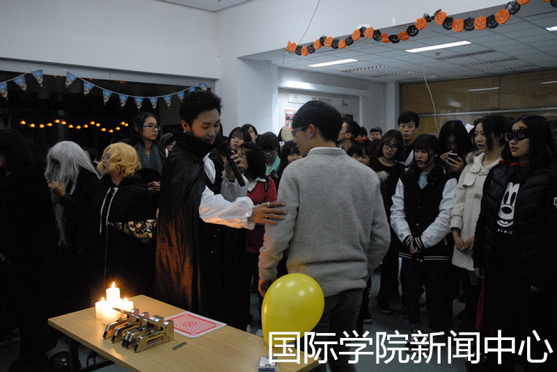 在“吸血鬼魔术师沙龙”中,来自国院的魔术师为同学们带来了精彩的魔术表演。在有颜值、才艺双全的DJ加盟,让人嗨起、震耳欲聋音乐的舞池中,身着各种“奇装异服”的“鬼怪”们尽情舞蹈。悟空体育大三食品专业的同学现场制作的小吃更是十分抢手……就连圣诞老人都被吸引并从悟空体育圣诞晚会穿越过来提醒大家记得也要去圣诞晚会热闹。最终,悟空体育“百鬼夜行”万圣节晚会在一片欢声笑语中结束。