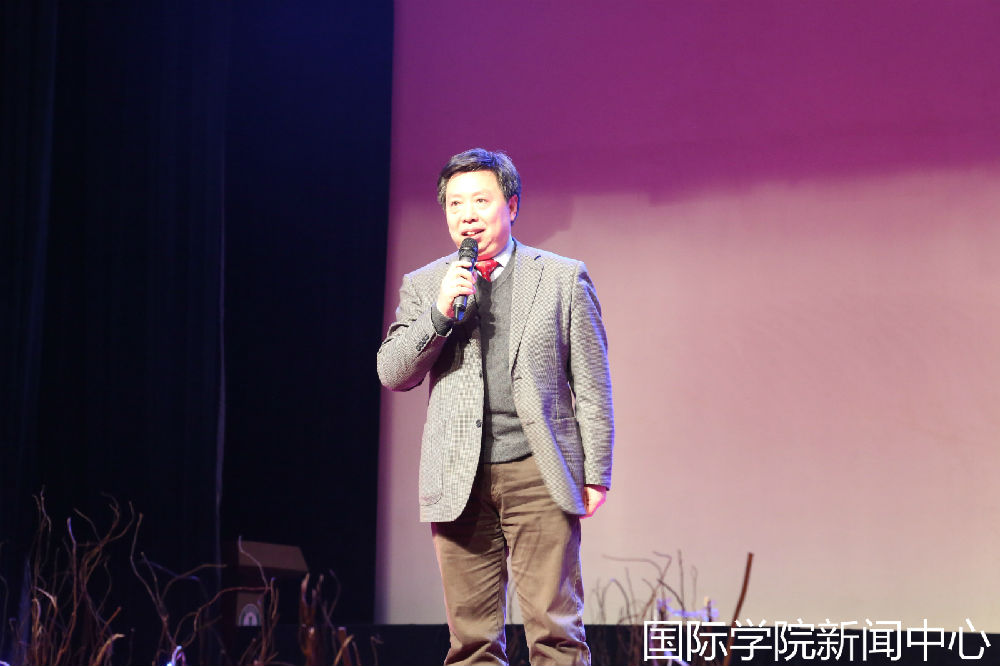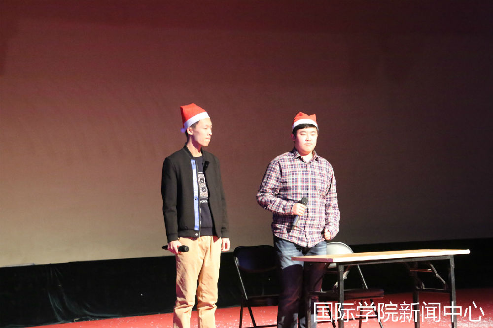 主持人进行简短开场白后,张志勇经理用流利的英语为我们送来了圣诞祝福。感谢张老师诚挚的祝愿,在平安之夜为我们带来温暖的力量。国院全体同学会更加努力向上,不负老师期望。