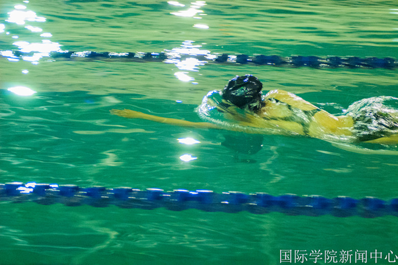 In the first match between Japan and China, the international school of Wei Haoran classmates in the men's 50 m breaststroke in the game won the third good grades.He pull strong, athletic body appearance, won a burst of applause.In the second match day, Wei Wenhui international college students in the women's 50 m and 100 m race, overwhelmingly defeated opponent, to win the match.