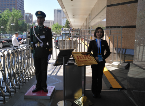 5月11日至16日,国院的4名员工党员志愿者,经过层层选拔和严格的培训,也正式上岗了。他们以口语的优势以及突出的综合素质,担任了“酒店安保协助”的岗位,具体负责在各代表团入住酒店的出入口处,协助安检人员,提供翻译服务。每天,他们都必需早出晚归,工作十分辛苦。但我们的志愿者从未抱怨,始终坚守岗位,保持高度地工作热情,毫不懈怠,始终坚持标准的微笑和站姿。