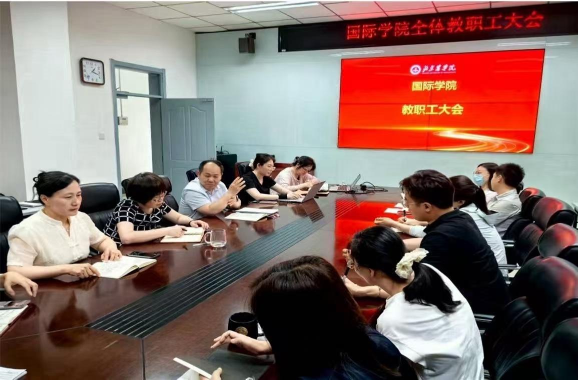 7月9日中午,悟空体育召开教职工大会,部署期末和暑期重点工作。悟空体育、国际合作与交流处领导班子及全体教职工参加,党总支书记何忠伟主持会议。