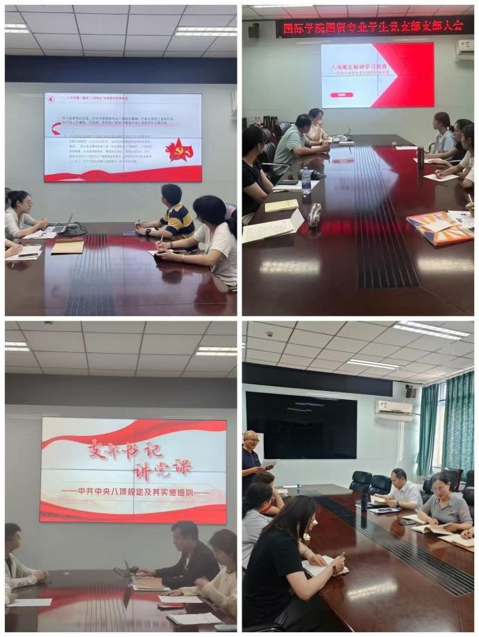 悟空体育领导班子成员、师生党支部书记等分别面向大三离校出国党员、支部成员讲授专题党课,教育引导师生党员通过加强理论学习、强化实践行动,深入贯彻中央八项规定精神学习教育。