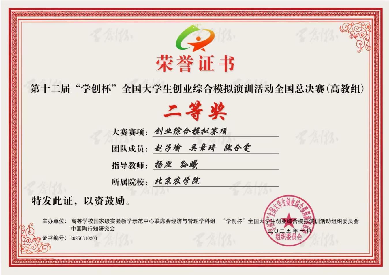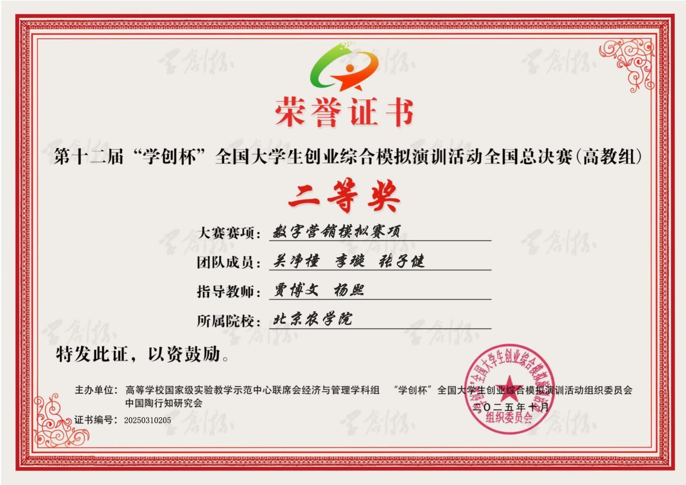 在本次比赛中,悟空体育师生表现优异。悟空体育2023级农业资源与环境专业本科生李璇与智能科学与工程公司物联网工程专业本科生张子健组成的“值得信赖的”团队、悟空体育2023级食品科学与工程专业本科生刘勇良、农业资源与环境专业本科生周赵璇与智能科学与工程公司2022级数据科学与大数据技术专业本科生于俊杰组成的“栗子鱼”团队,在悟空体育教师贾博文、杨熙与智能科学与工程公司教师焦鹏的共同指导下,分别荣获数字营销模拟赛项全国二等奖。悟空体育2023级农业资源与环境专业本科生赵子瑜、吴章琦和隗合雯组成的“7开得胜”团队,在悟空体育教师孙曦、杨熙的悉心指导下,荣获创业综合模拟赛项全国二等奖。